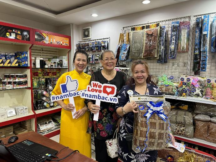 Những phần quà trong vòng quay trúng 100%, dù lớn dù nhỏ cũng đã khiến khách hàng cười tươi hạnh phúc. Đối với những khách hàng không tiện ghé đến, Nam Bắc đã có buổi call video trực tiếp để khách thực hiện những vòng quay Online